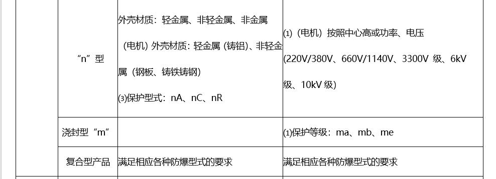 (2)不同防爆結(jié)構(gòu)、安 全參數(shù),如不同外形大小(電機(jī)按中心高或功率一大一?。?、外殼材料、產(chǎn)品規(guī)格(電機(jī)不適用)等,應(yīng)分別送樣。